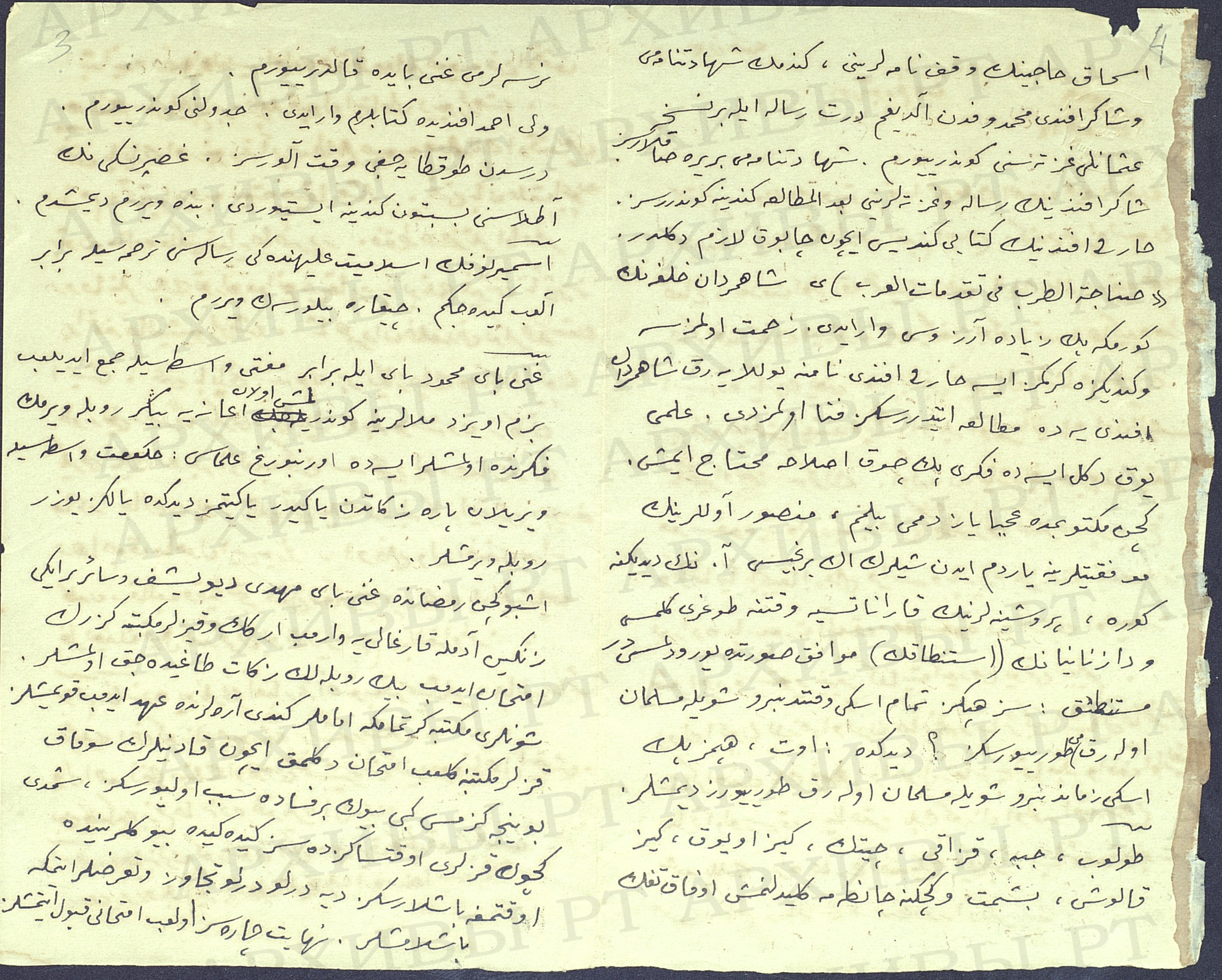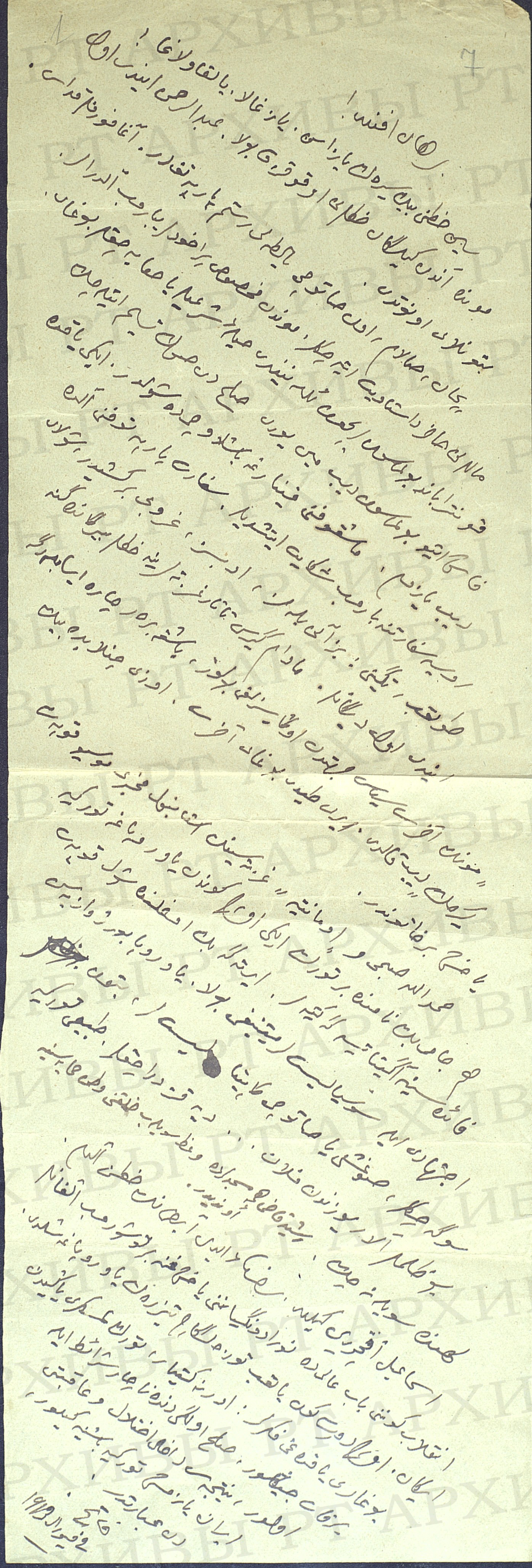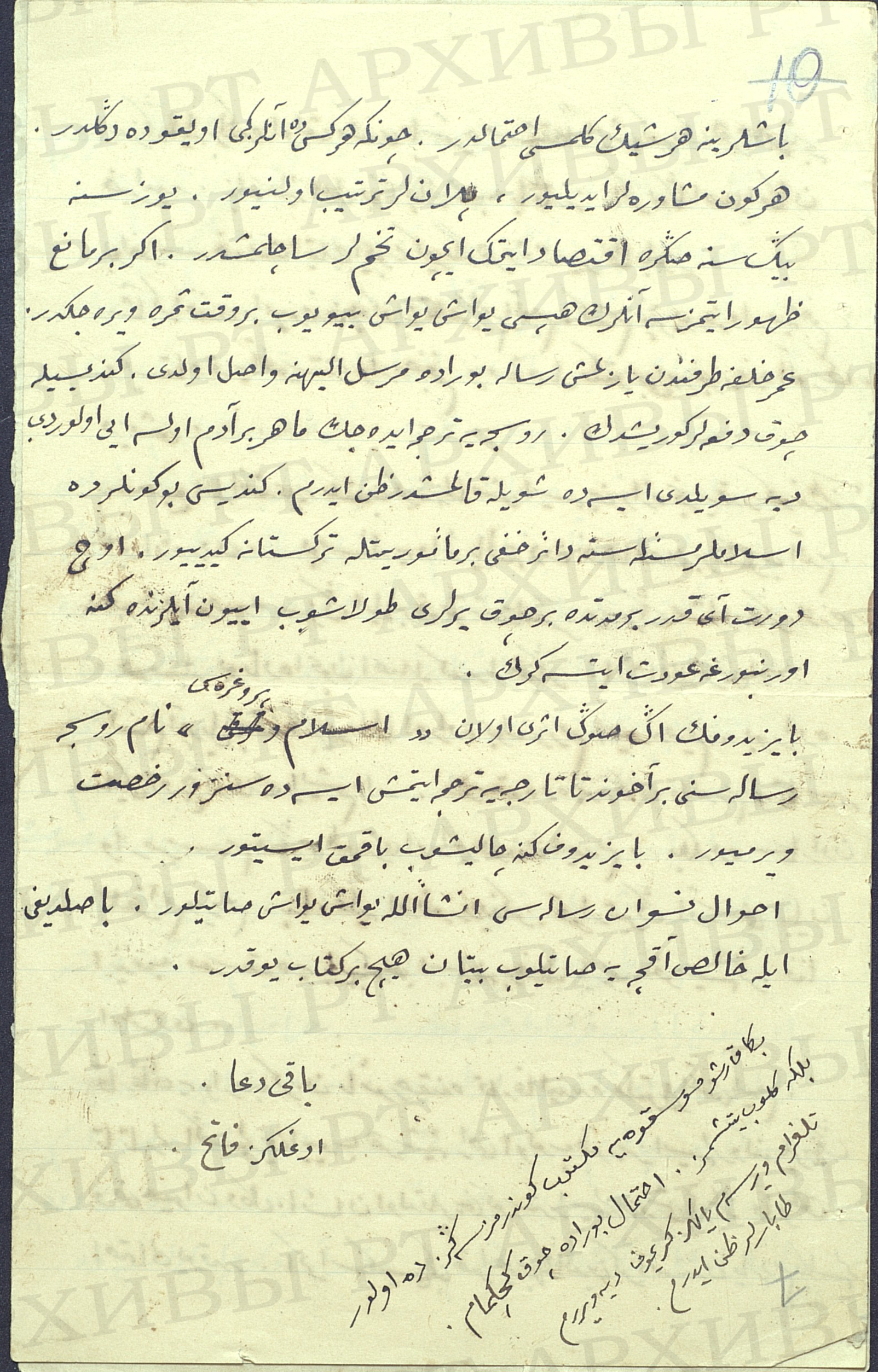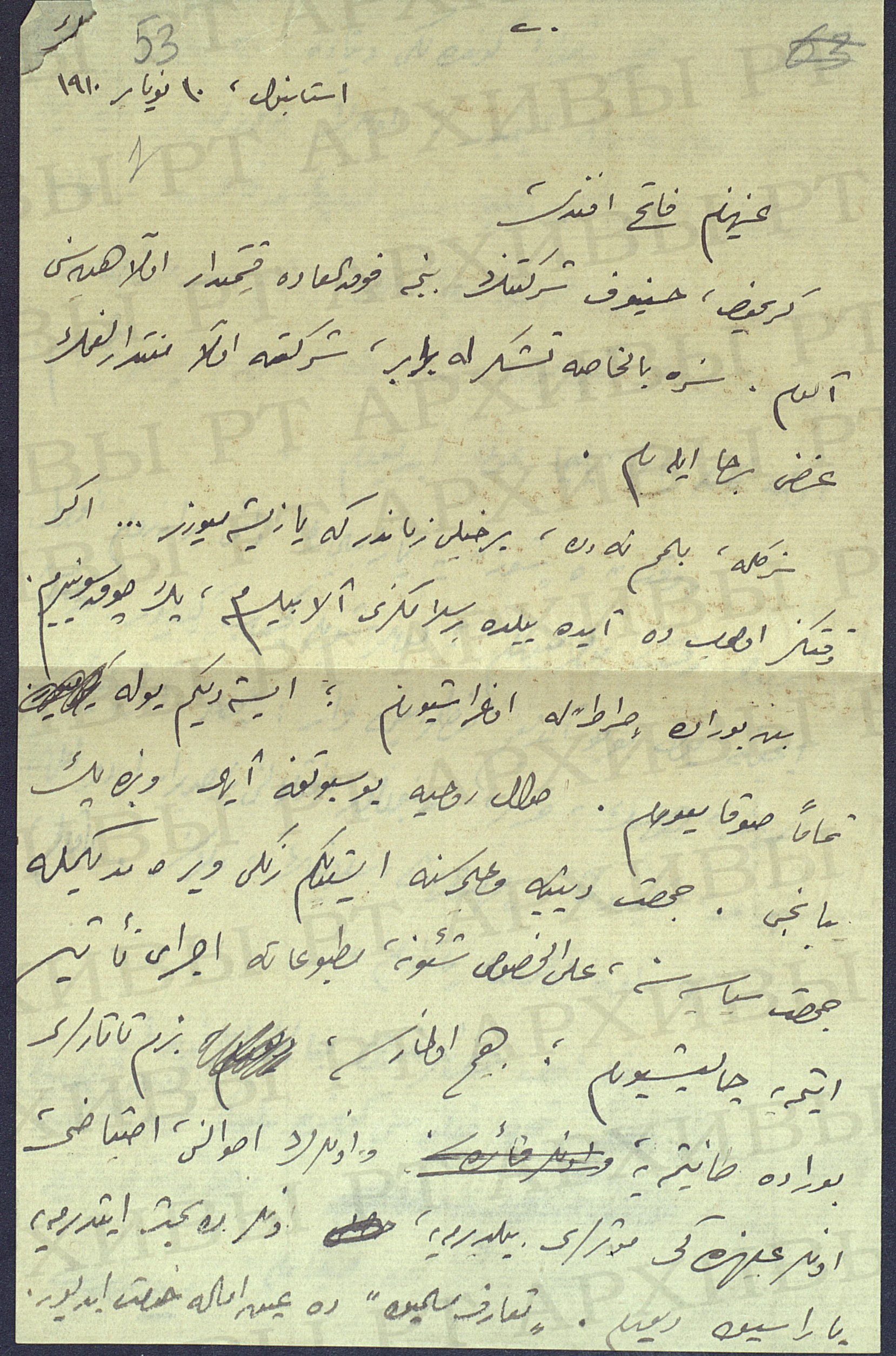 Письмо Фатиха Карими Бурхану Эфенди о положении в Стамбуле