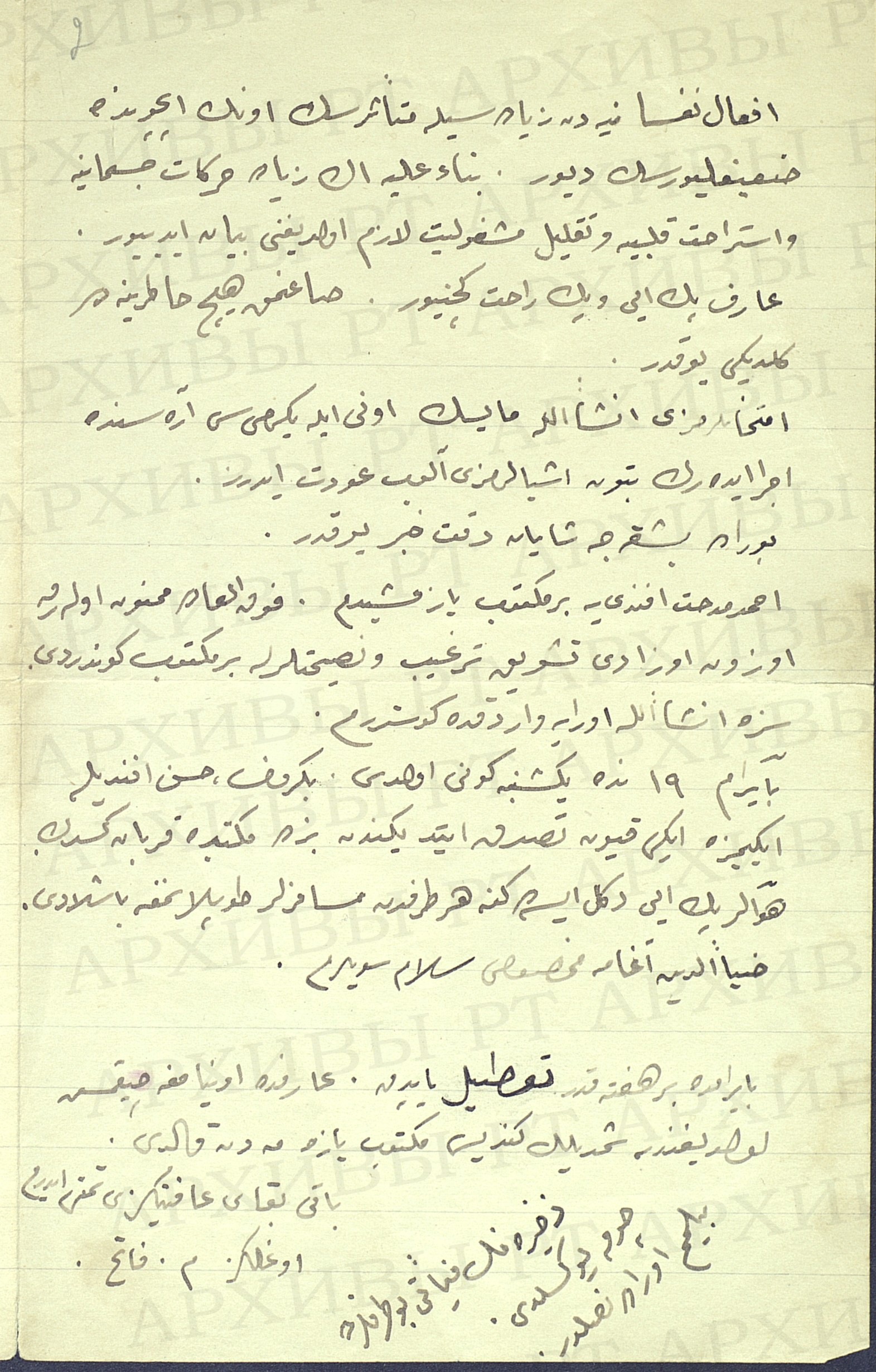 Письмо Фатиха Карими родителям о переезде в Уфу