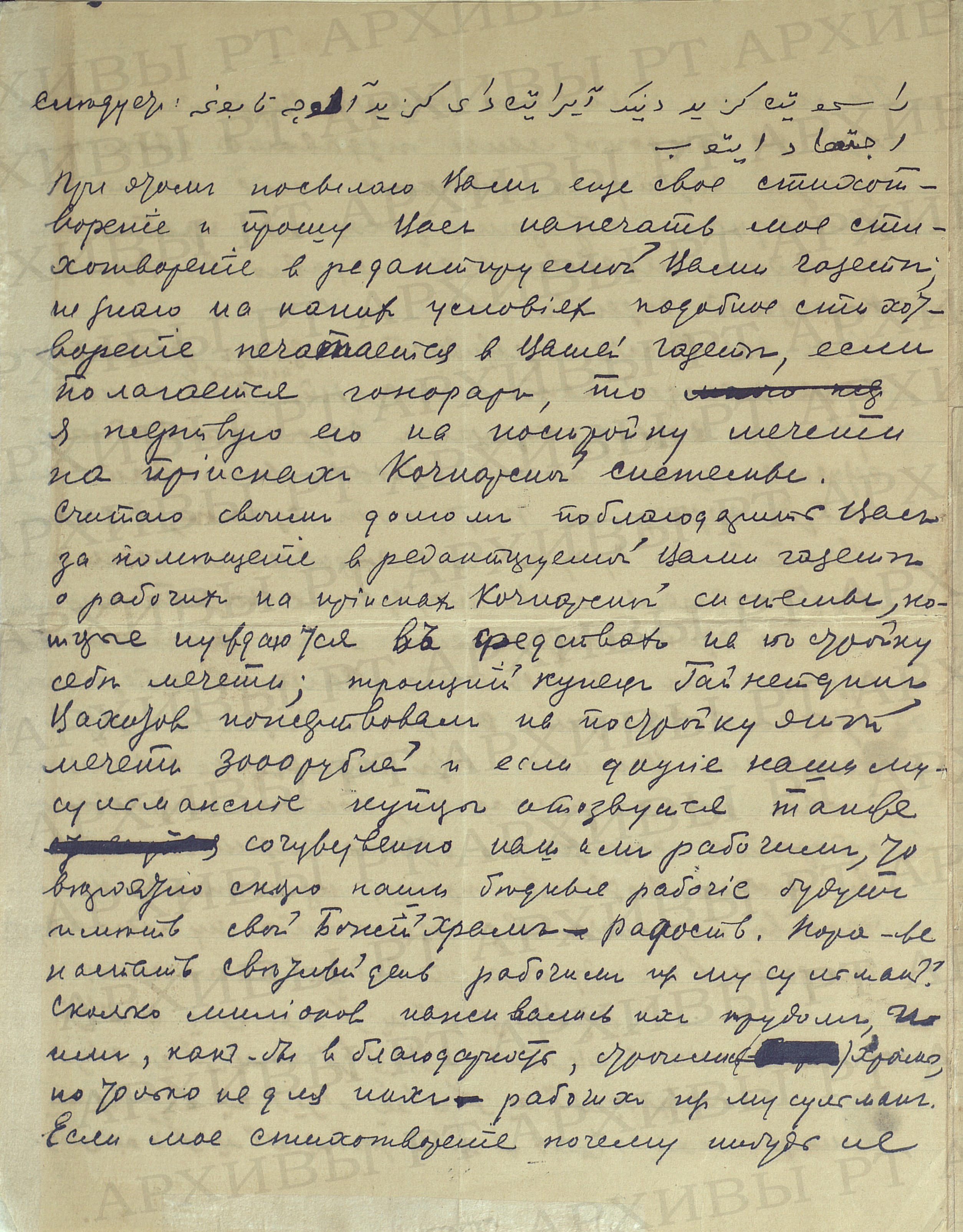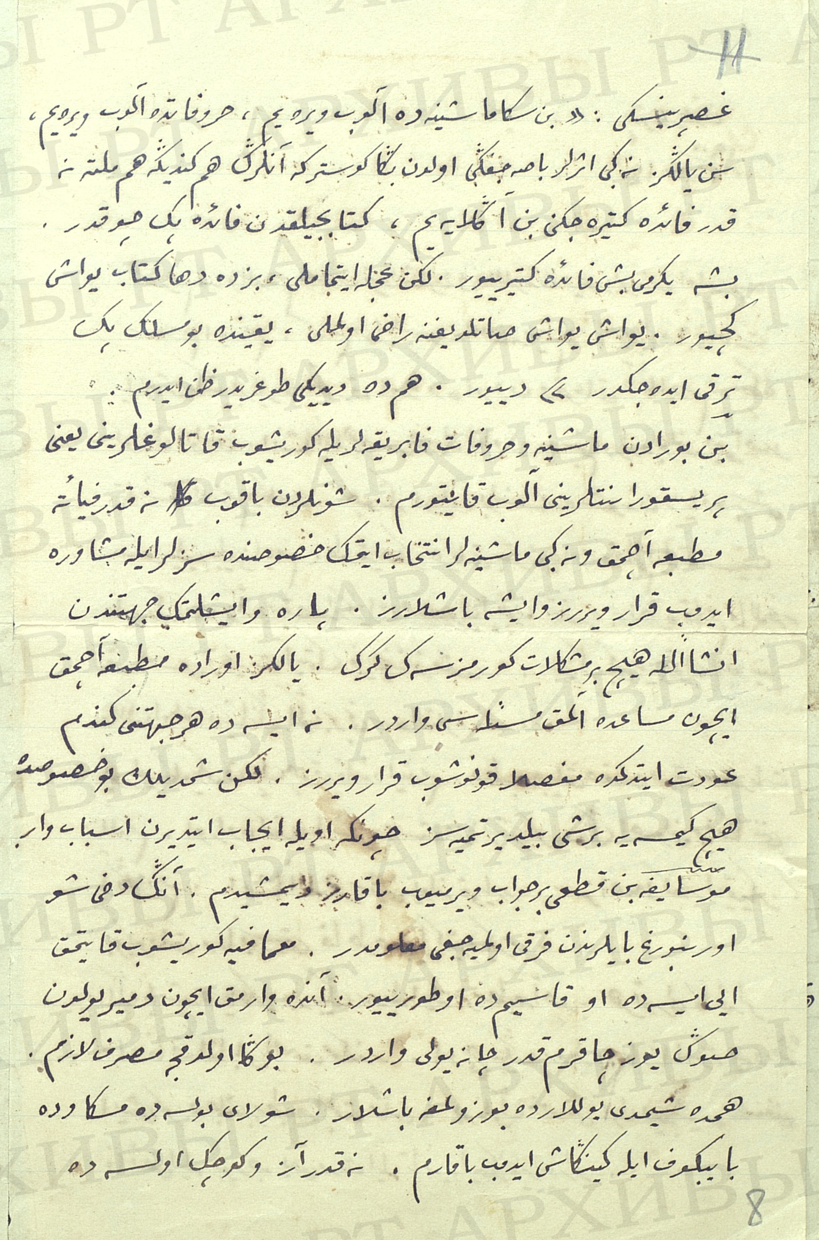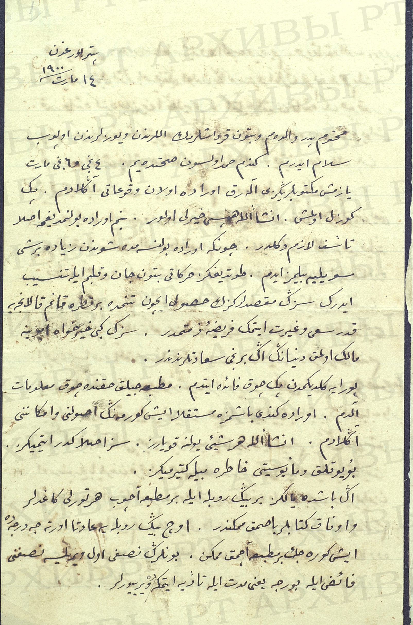Письмо Фатиха Карими родителям об изучении типографского и полиграфического дела