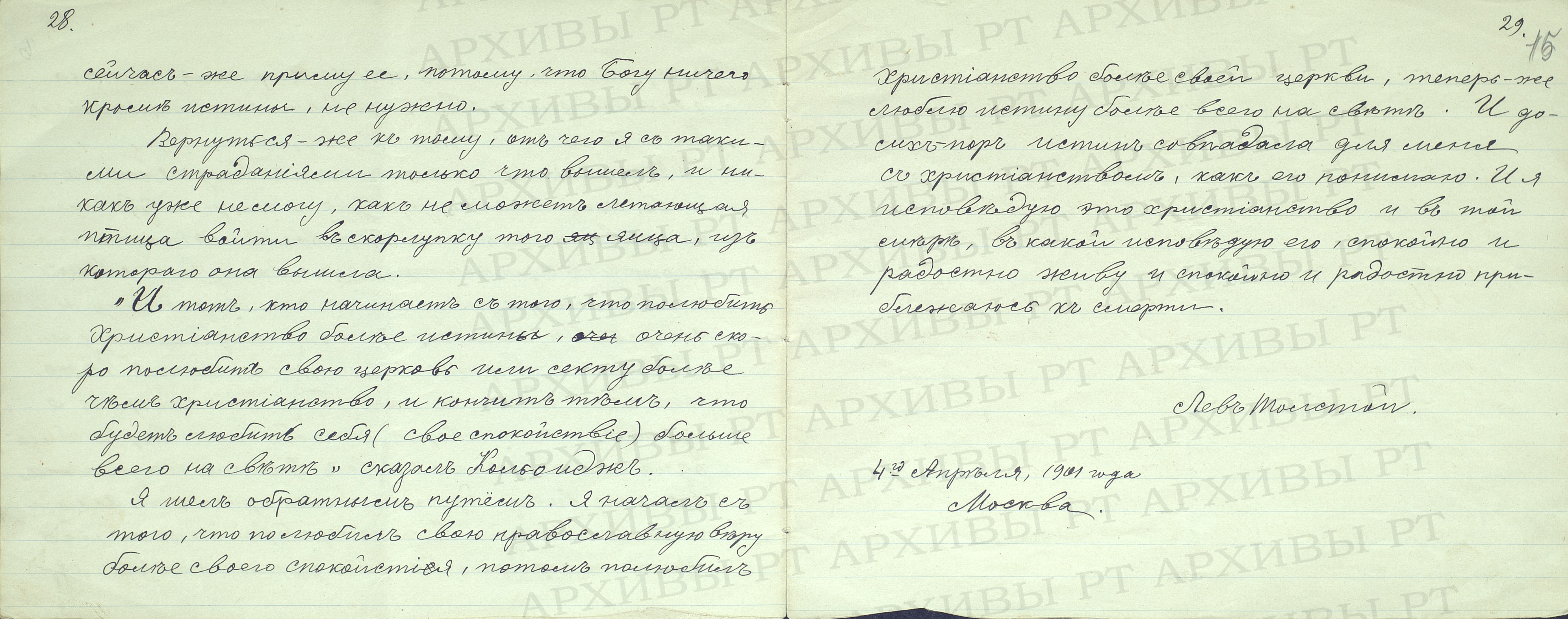 Письмо Л.Н. Толстого Фатиху Карими с рассуждениями о религии