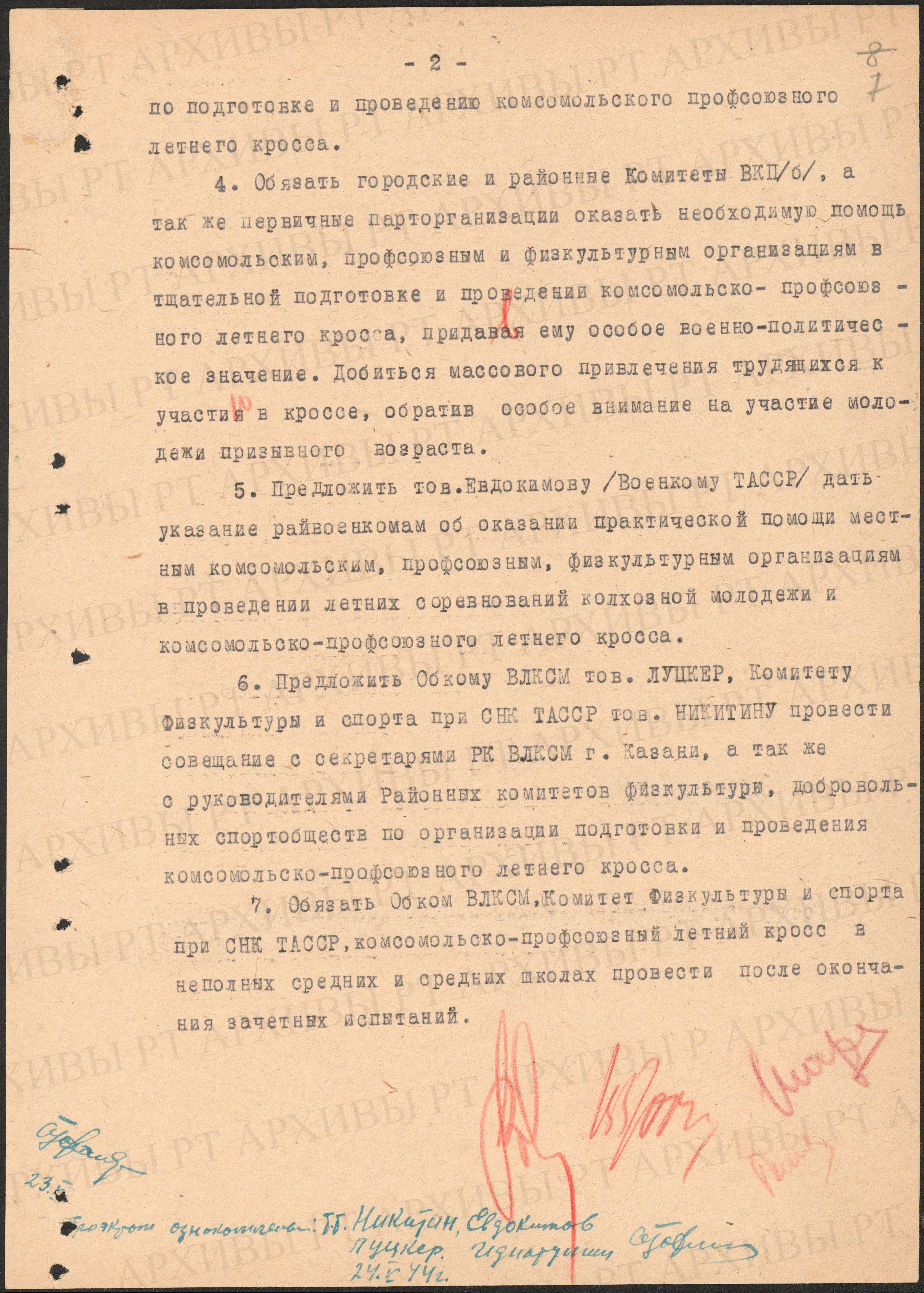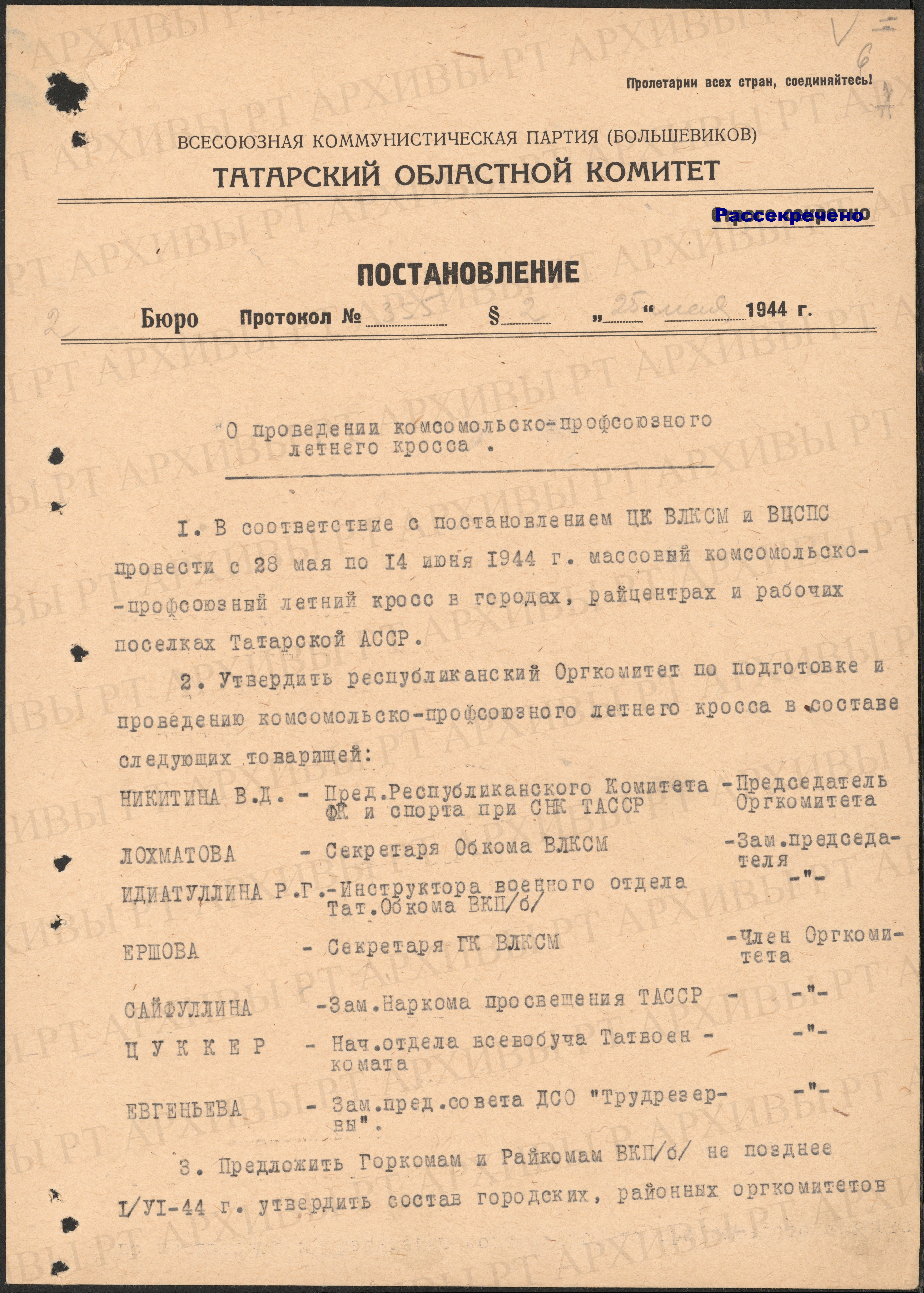 Постановление заседания бюро Татарского обкома ВКП(б) «О проведении комсомольско-профсоюзного летнего кросса»