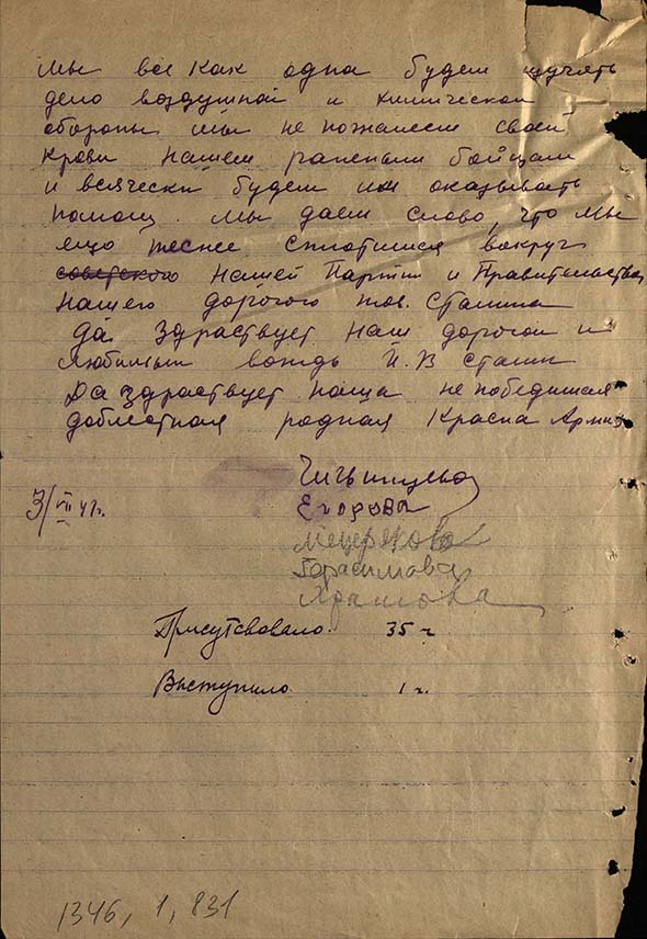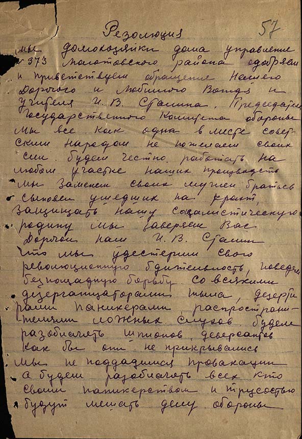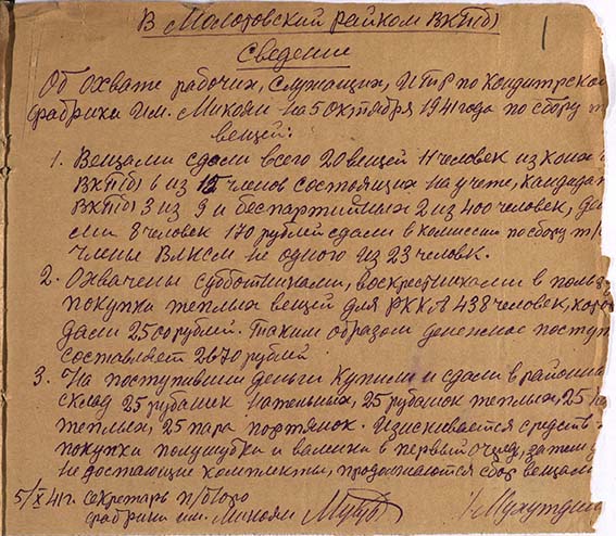Протокол митинга рабочих и служащих Мельзавода №5 об отчислении заработка в фонд обороны страны (не стали сканировать)