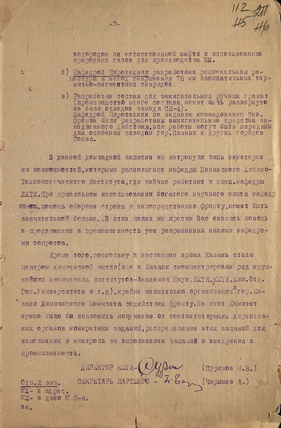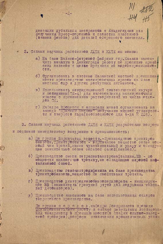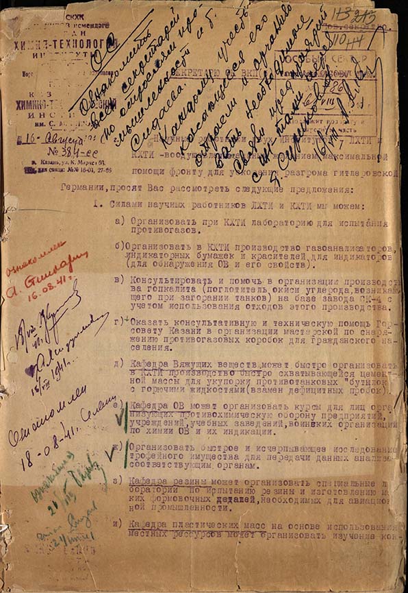 Докладная записка Академии наук СССР в Казанский комитет обороны о принятии мер в целях испытания и широкого внедрения пропитки для шинелей, 19 ноября 1941 год