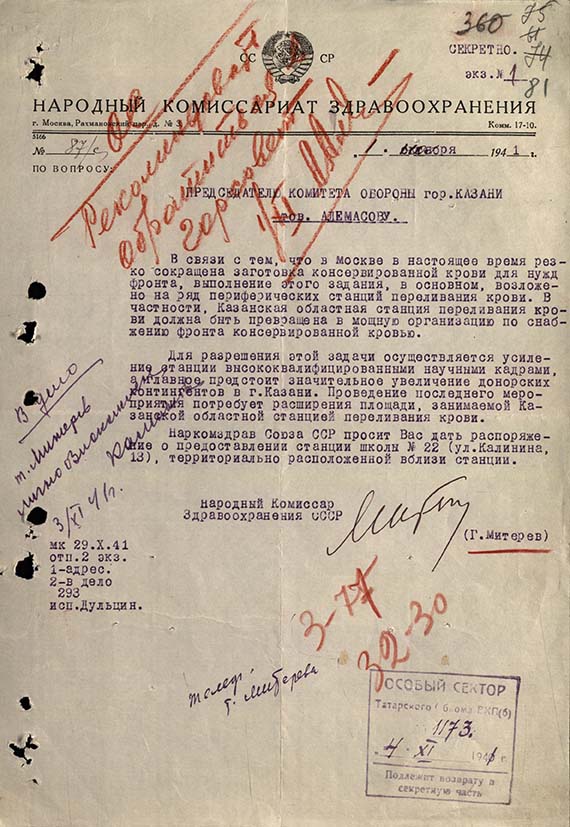 Казань и вся республика жили одним дыханием с армией. Повсюду кипела работа: собирали теплые вещи для бойцов, отправляли посылки на передовую. В развернутых госпиталях принимали и выхаживали тысячи раненых. А на областной станции переливания крови при Татнаркомздраве шла своя, тихая война — женщины и мужчины безвозмездно сдавали кровь, чтобы спасти жизни защитников.