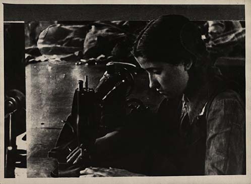 Комсомолка А. Габдрахманова – машинистка 1 Меховой фабрики выполняет заказ фронту